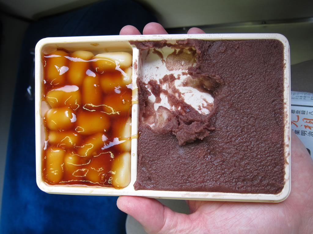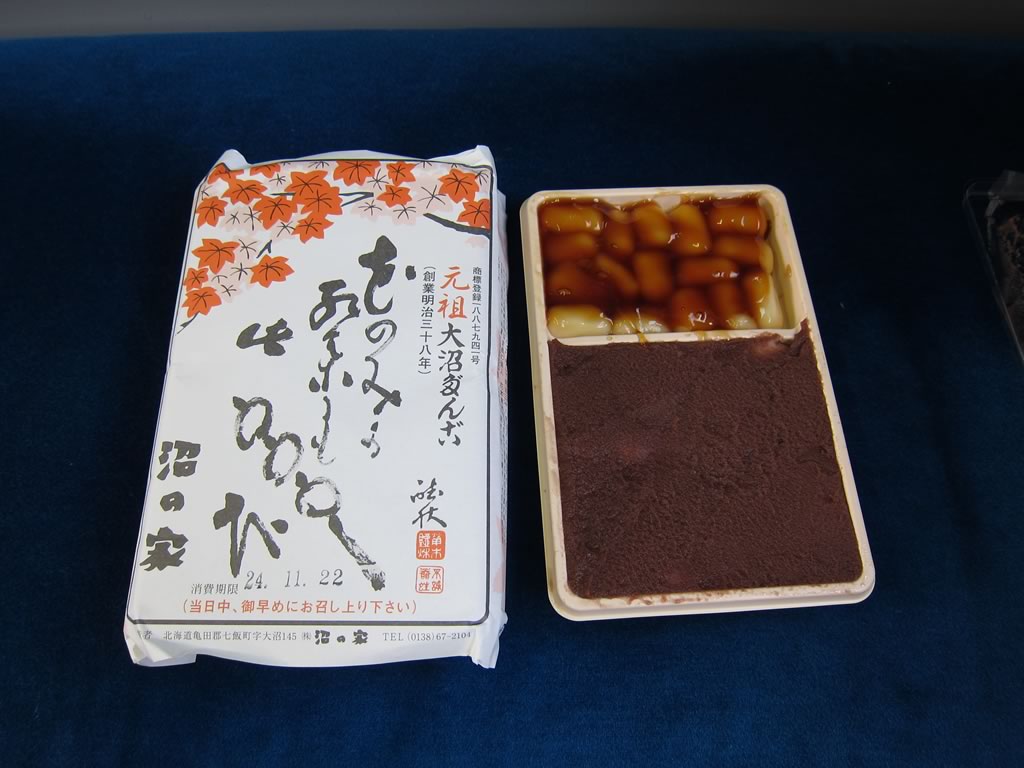 写真の餅は,大沼名物「大沼だんご」。スーパー北斗の車内販売で購入しました。400円のワリにボリュームがありましたね。