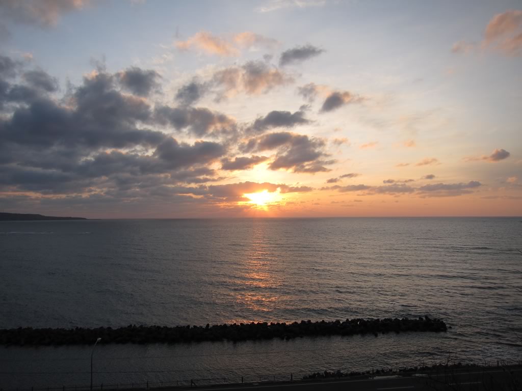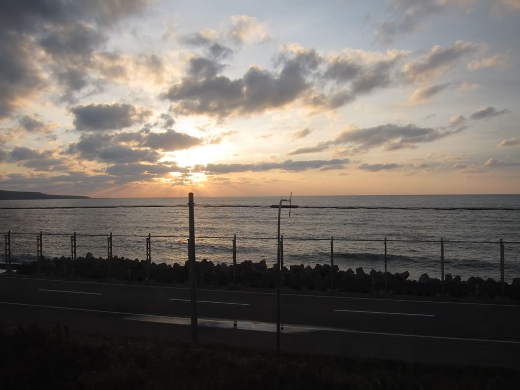 江差は夕日の名所らしく,近くの丘からは海に沈む雄大な落陽が見られました。