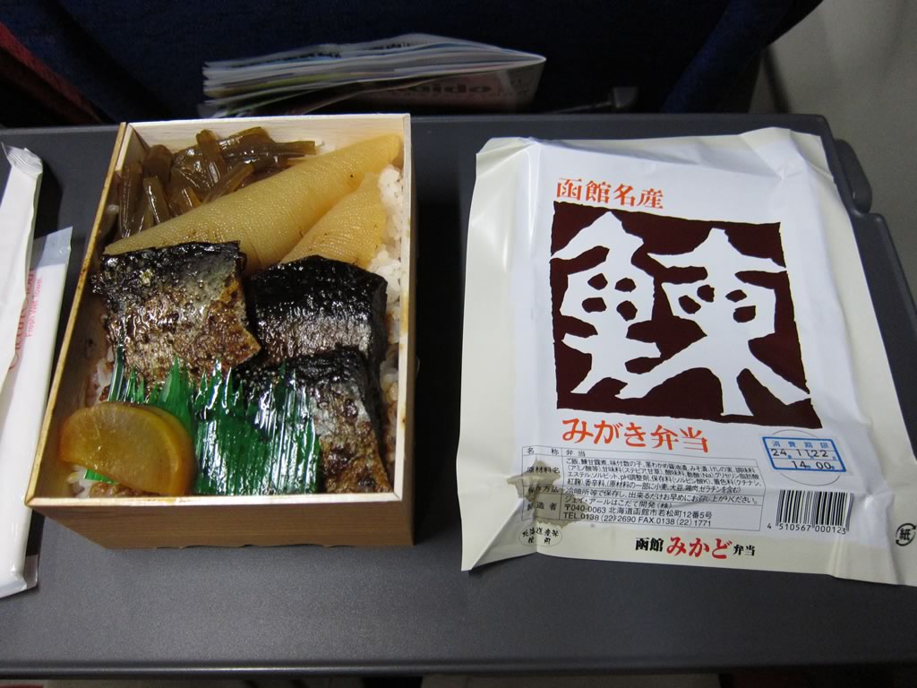 まずは,関空から函館へヒコーキでひとっ飛び。ゼータクにもプレミアムシートに座ってしまいました(早割だと+2千円でアップグレードできたので)。弁当が出ることを忘れていて,事前に朝食を買ってしまったよ(笑)。