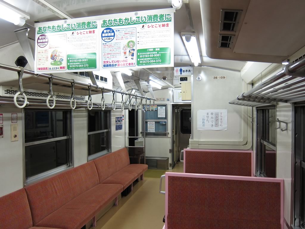 田野畑〜宮古間は,もう一度三陸鉄道に乗車。コチラの車両は,汚水処理施設がないためか,トイレが使用不可になっていました。