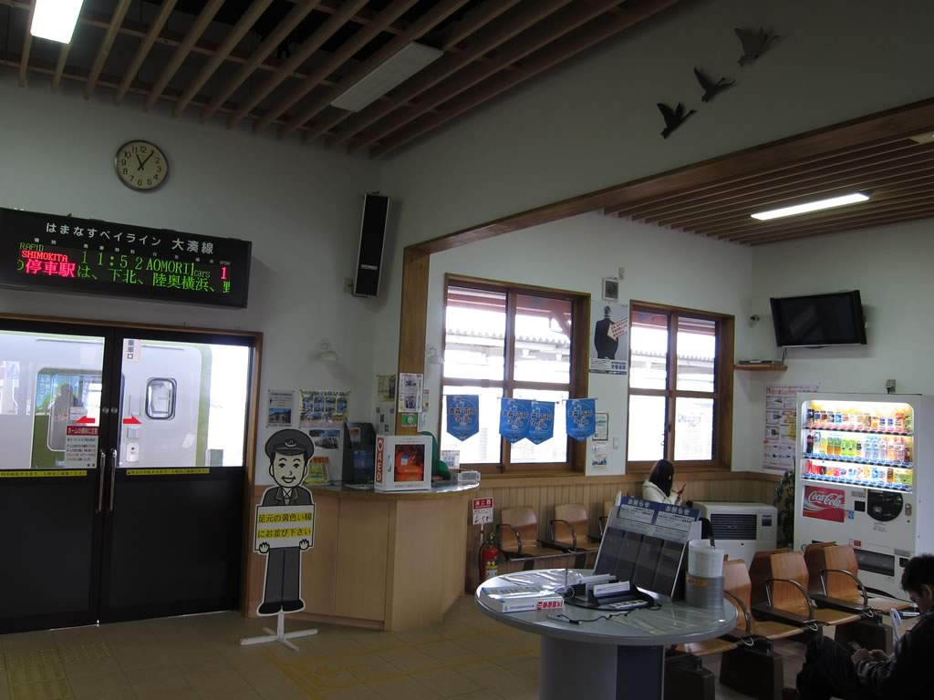 大湊線の終点大湊駅着。駅舎は最近建て替えられたらしく,綺麗に整備されていました。