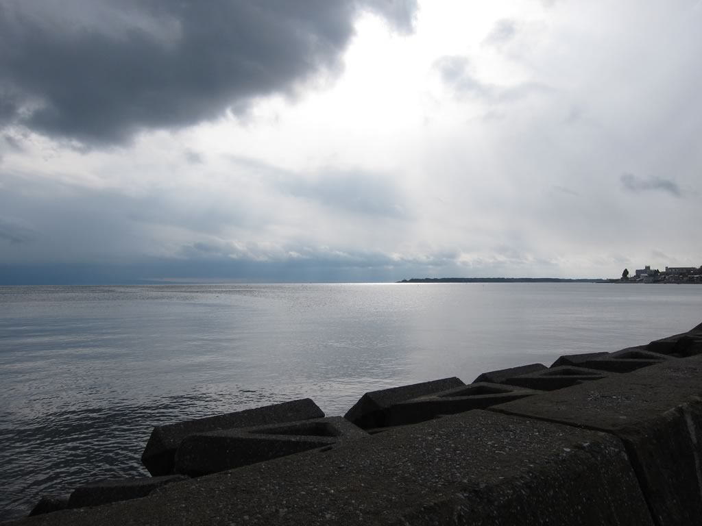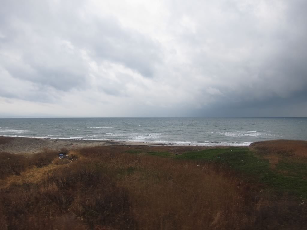 恐山山地の麓と,凪の陸奥湾(天気はわるかったけど)。