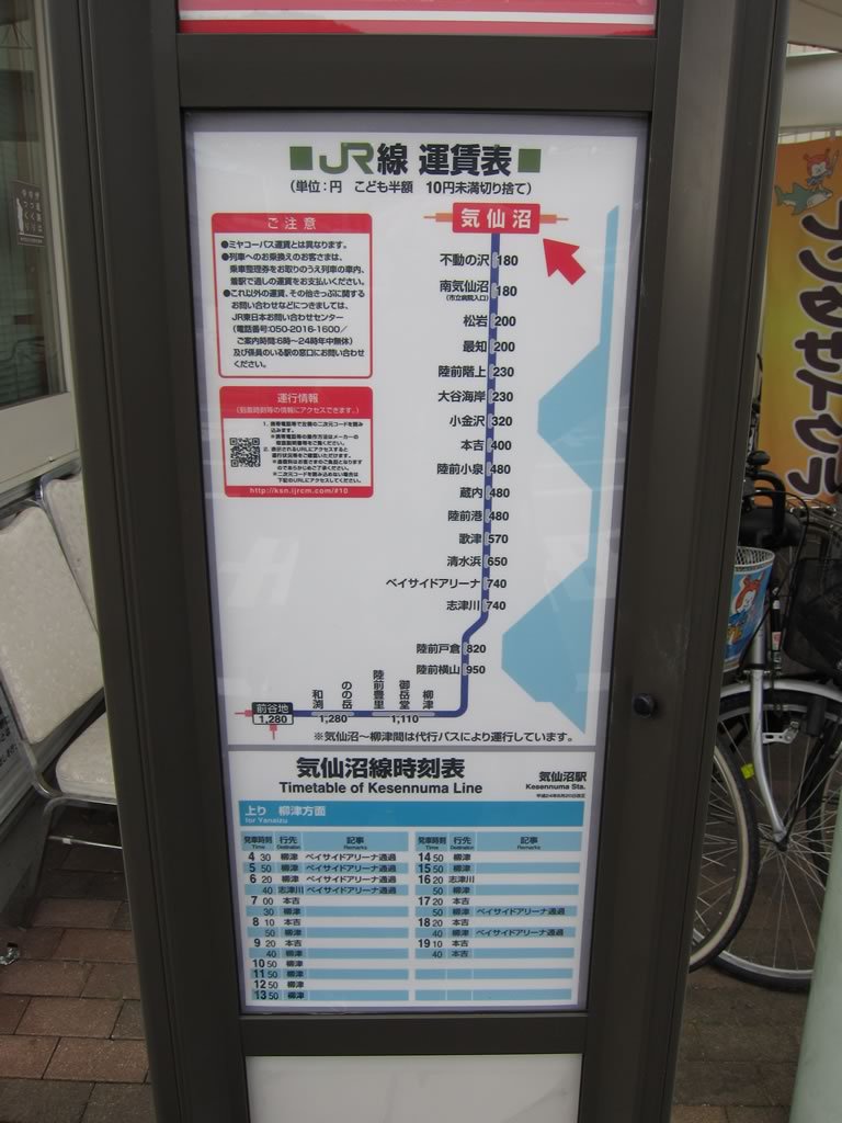 柳津行の気仙沼線代行バスに乗り換え。乗車時間は約2時間です。