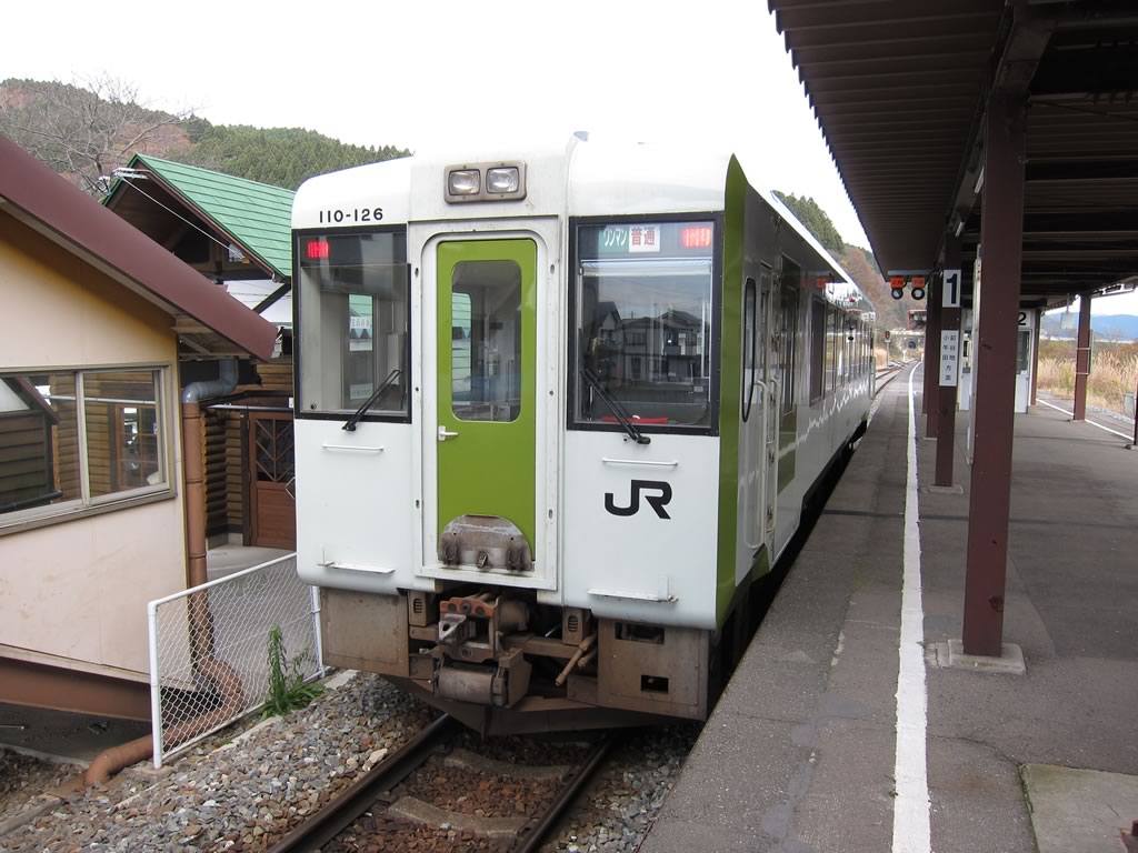 柳津駅着。列車との接続がわるく,一時間ほど待つことに。