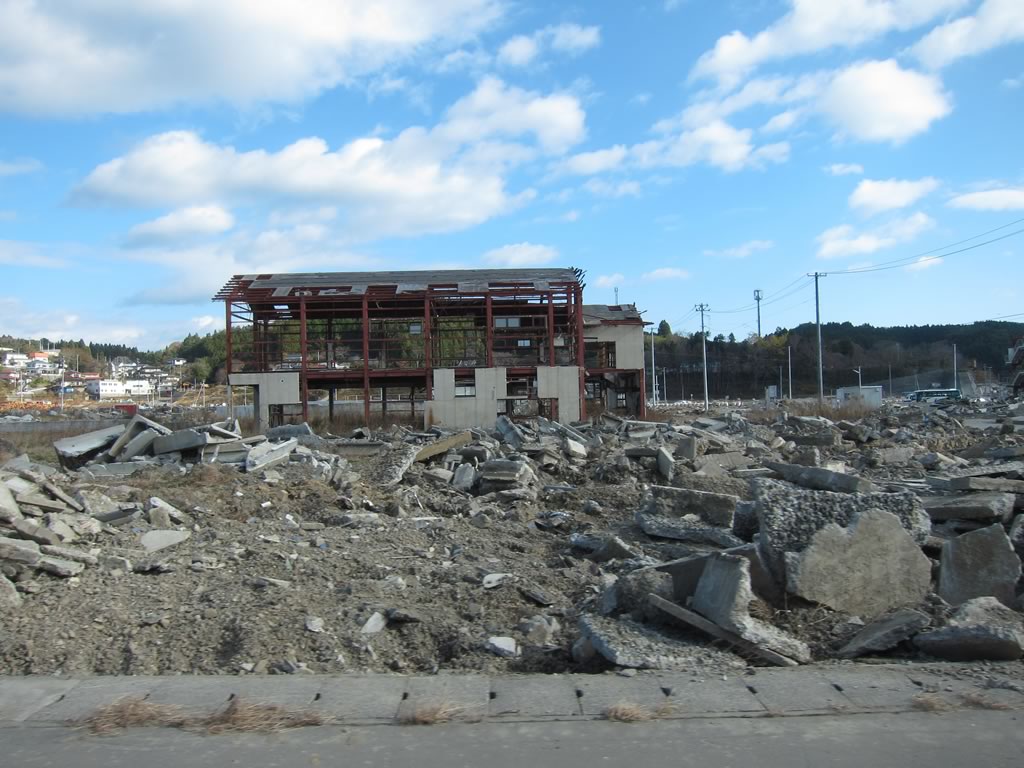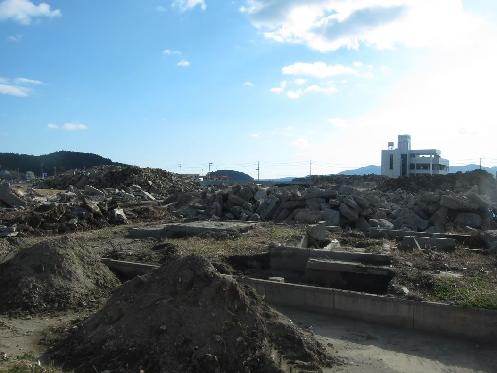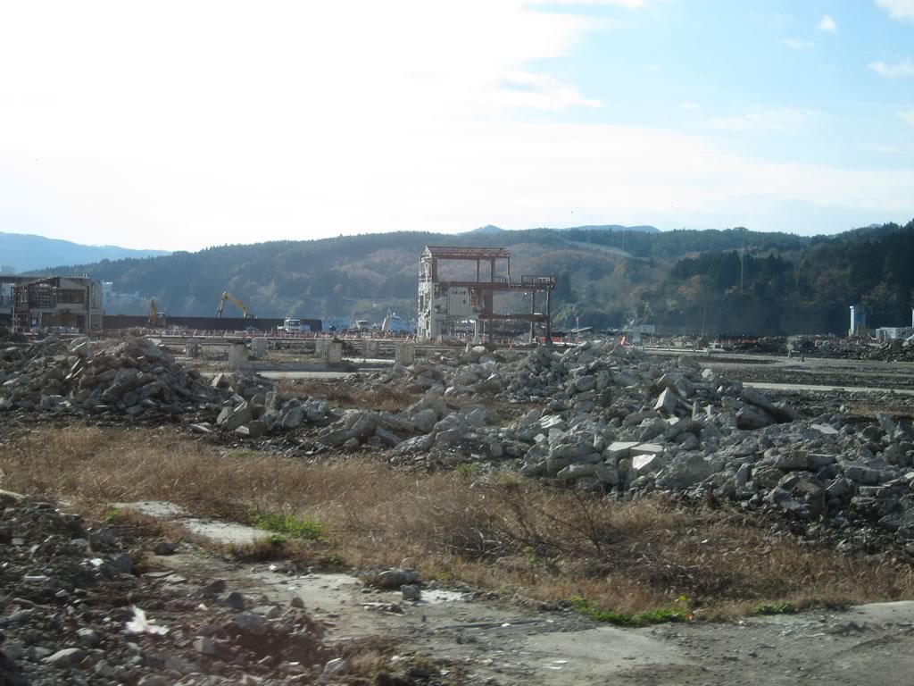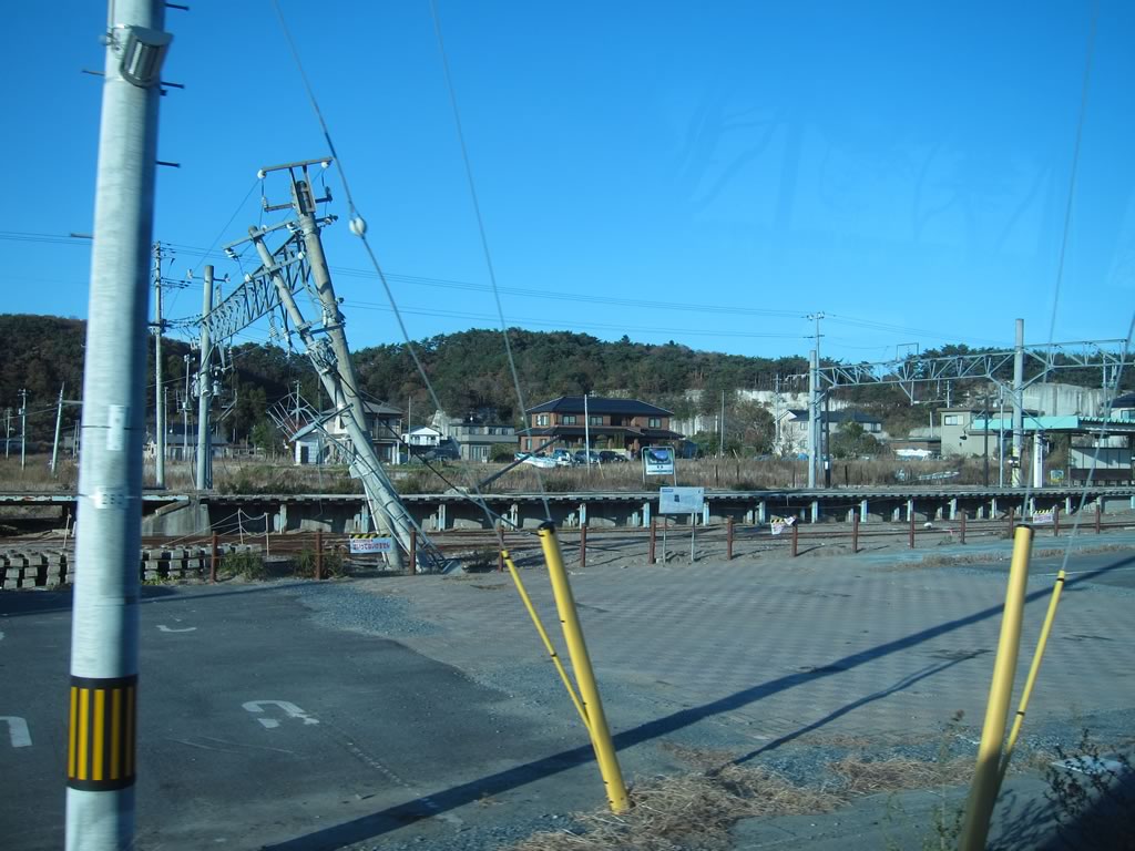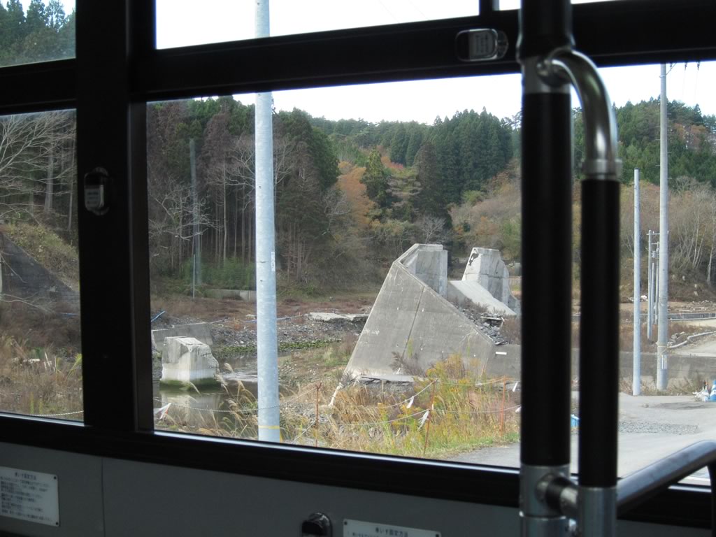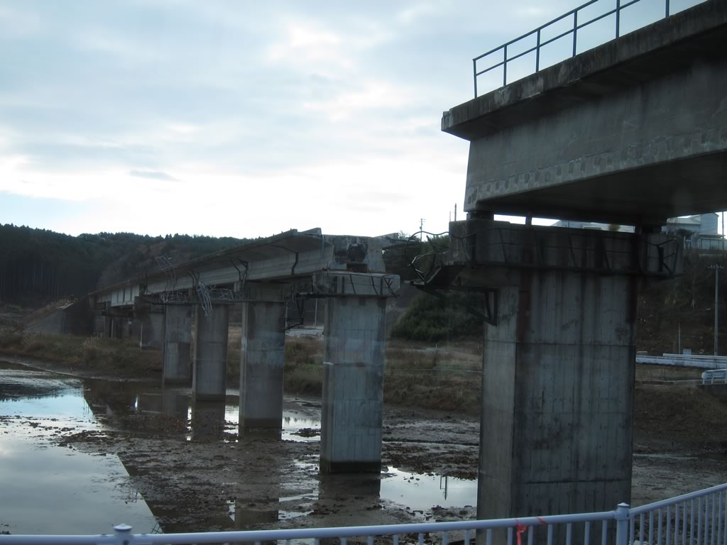 沿岸部が近づくにつれ,高架橋が流されていたり,瓦礫が積み上がっているのが目にとまります。