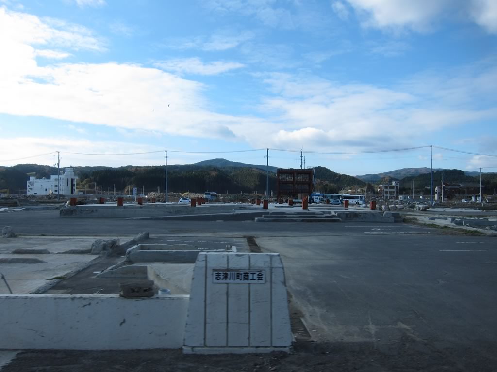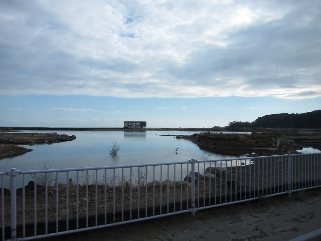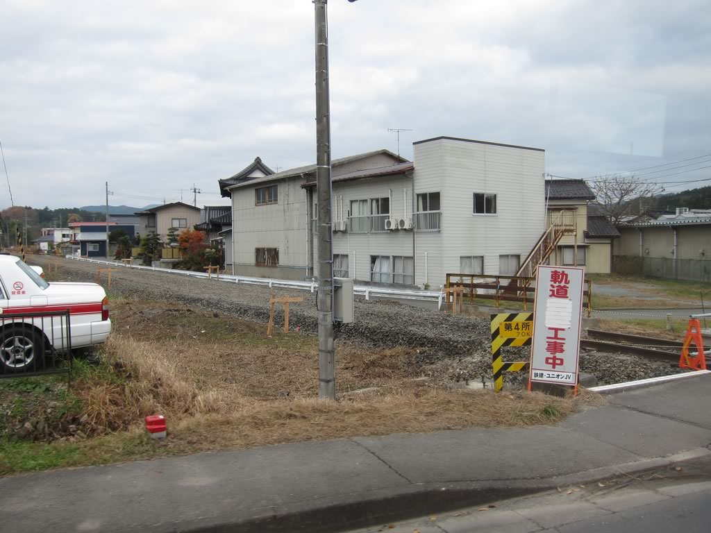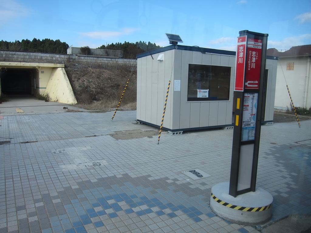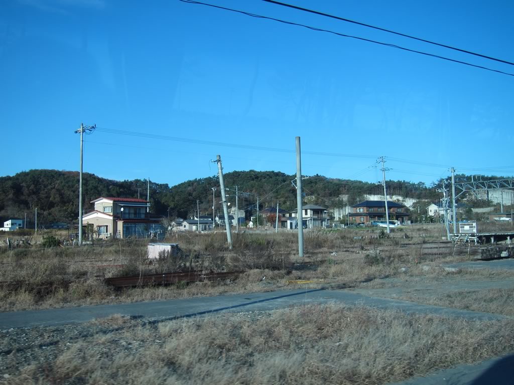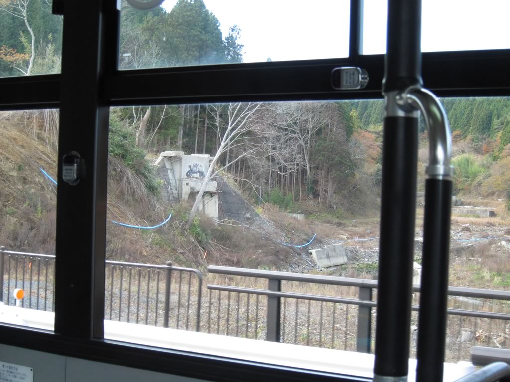 気仙沼線で一番被害が大きかったと思われる志津川駅付近を走行。あまりの被害の大きさに言葉を失います…。
