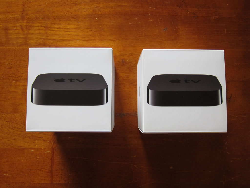 こちらは新旧Apple TVの箱。側面の「1080p」の表記以外で,区別がつきません。これから買う人は,間違って旧モデルを買わないよう側面の表示にお気をつけあれ。