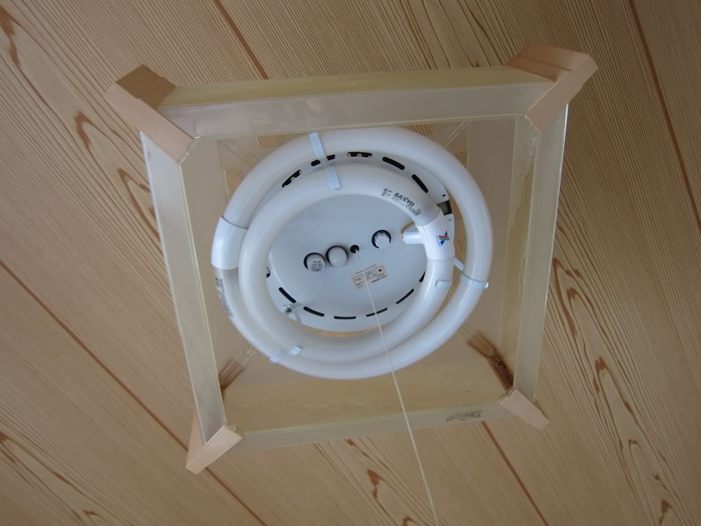こちらは取替前の蛍光灯型照明器。元和室なので,デザインも和仕様。