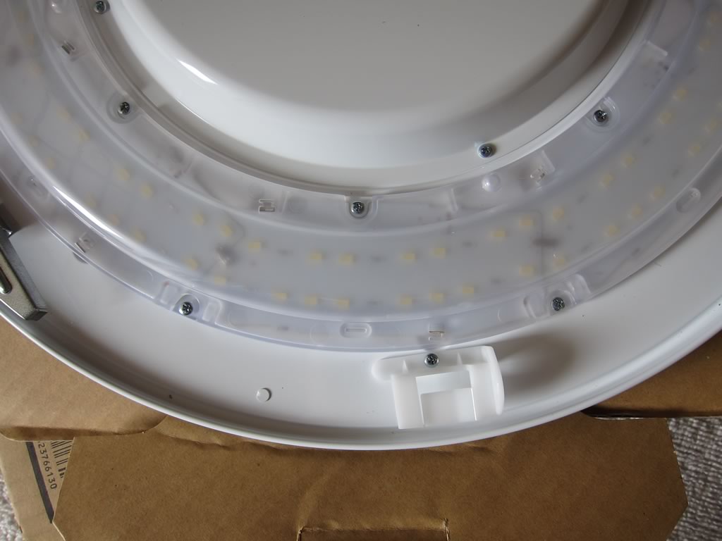 開封中のLEC照明器。宅配ピザのような段ボールに入っていますな。光源のつぶつぶも見てとれます。