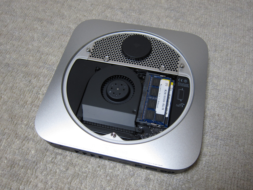 Mac miniは簡単にメモリの交換ができる設計になっているけど,裏蓋が意外と固いので回すときに結構力が要ります。