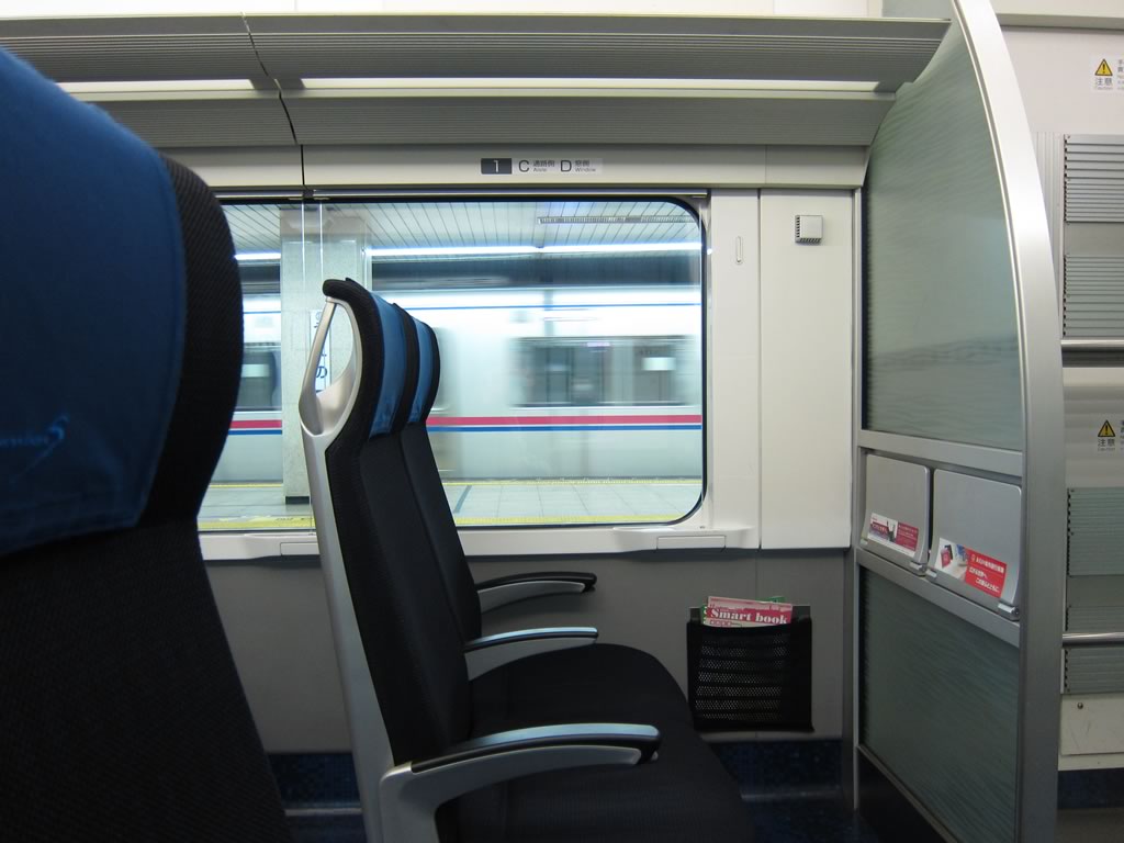 成田スカイアクセス線直通のスカイライナーへ乗車。乗り心地はまあまあだけど,シートの薄いこと。印旛日本医大−空港第2ビル間は在来線最速の160kmで走行します。