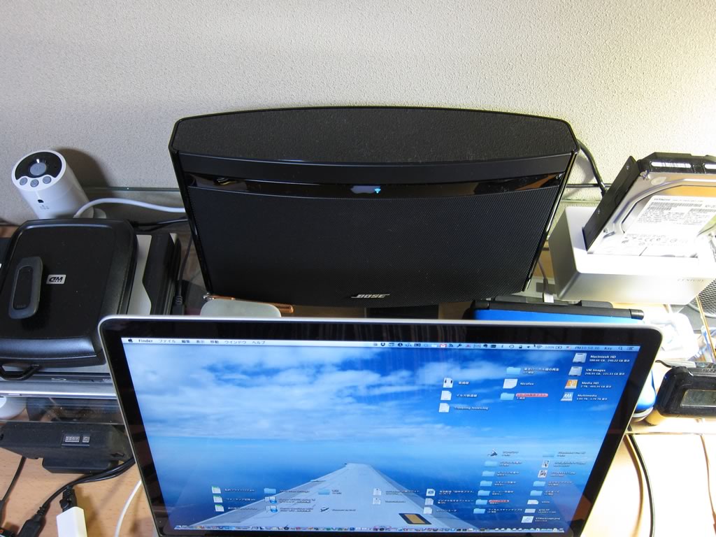 とまぁ,閑話休題。棒ナスも支給されたことだし,メインマシンにつないでいるロジクールのスピーカーも激古でおまけにサブウーハーから低音ダダ漏れで上下階の住人に迷惑だろうからと「買い換えるなら今でしょw」的テキトーな理由をつけて,家電量販店まで出向いてきますた。で,買ったのは,BoseのSoundLink Air。AppleのAirPlayに対応したワイヤレススピーカーです。坊主はあぽーと同じくどこで買っても値引きがあまりないので,ネット通販よりも量販店で買ってポイントを付けた方がお得かもしれませぬ。で,ケーブルが違うだけでディジタル音源の音色も変わるとおっしゃるおーでお狂もとい教な方々は,「ワイヤレスなスピーカー,何それおいしいの?!」状態でしょーが(^ ^;),普段Bluetoothのイヤホンの音で満足している拙者としては,もぉ充分すぎるぐらいな音を出してくれます>SoundLink Air。もっともAirPlay自体,Bluetoothではなく無線LAN経由で出力するので,音質は(BTよりも)よくて当たり前なんですけどね。Boseは低音がゴーヂャスと聞いていたけど,本機も盛大にまき散らし…いや低音を奏でてくれるので(^ ^;;),背面の穴(バスレフポート)に綿などを詰めて少しマイルドな音にチューンしております。
