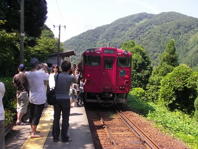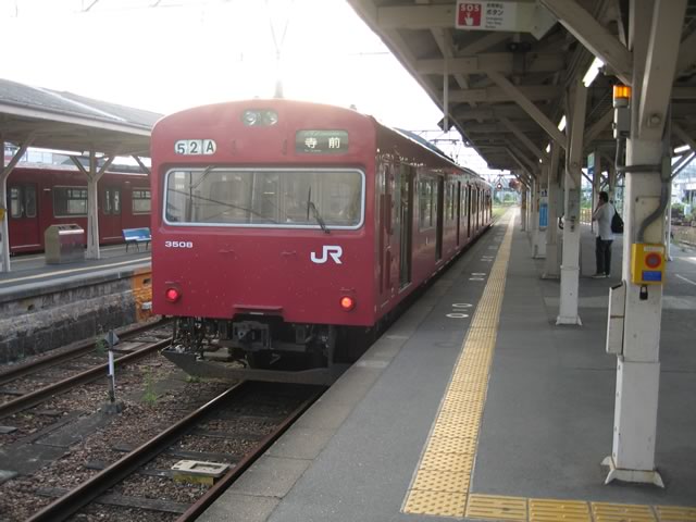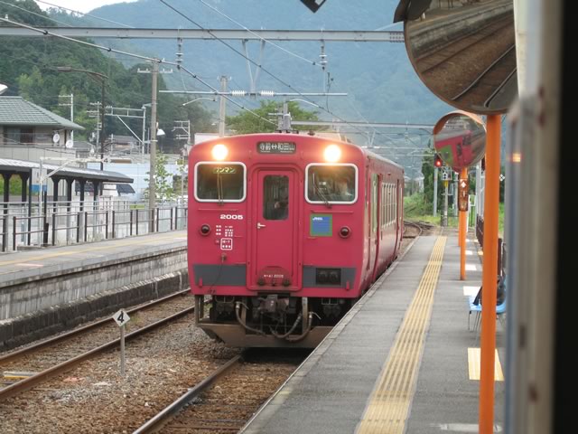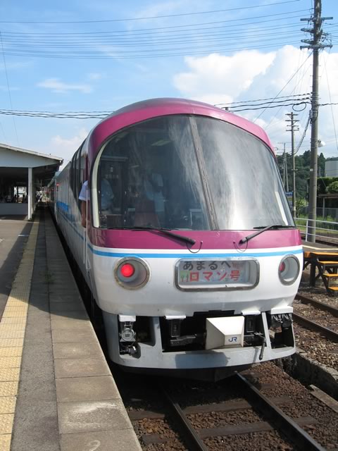 臨時列車のあまるべロマン号(8月27日まで)が走り抜けます。指定券なしで乗れる快速扱いなので,18きっぷでもOK。太っ腹!>JR西。