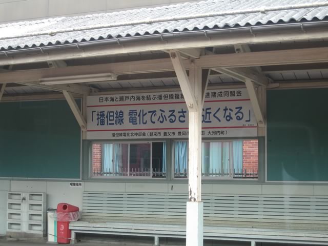 和田山駅に到着。電化電化とアチコチに書かれているけど…。