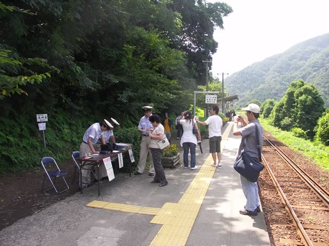 餘部駅到着っ。通過したことは何度かあるけど,降り立つのは今日がはじめて。普段は無人駅なのに,今日は駅員が3人もいましたよ(記念のオレンジカードを売ってた^ ^)。
