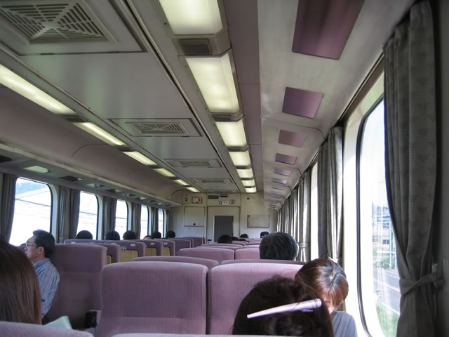 最後に浜坂駅まで移動して,快速あまるべロマン号(キハ65)に乗車。イベント列車からか,ちょっと変わった雰囲気の車内です。
