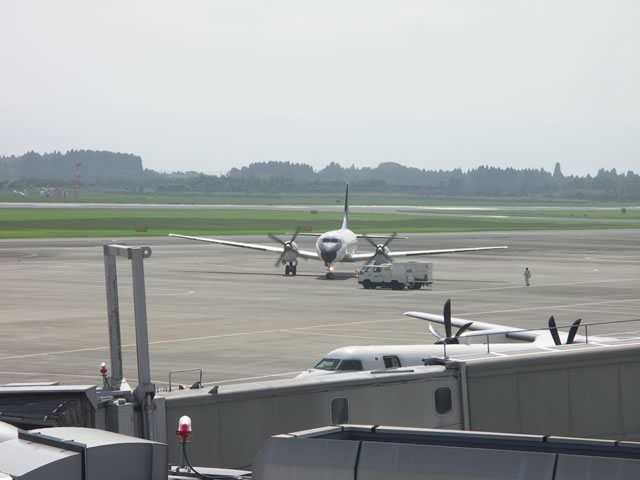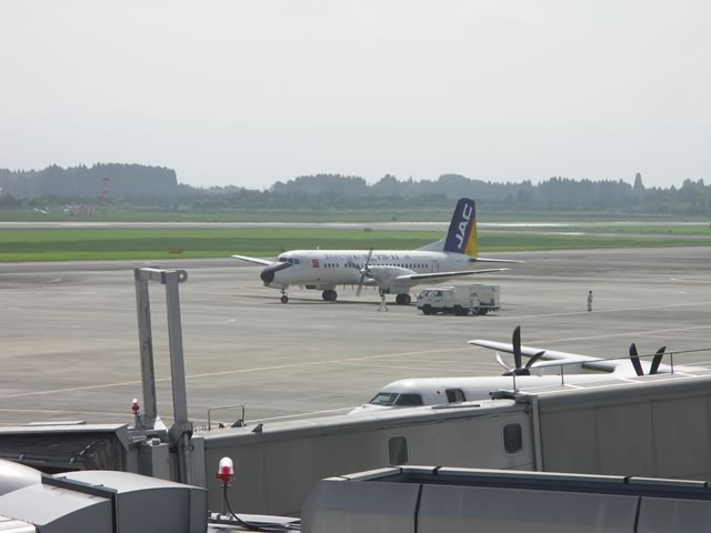 12時ちょっと前に福岡空港へ到着。こちらは徒歩で移動なので,YSのフォルムを正面から撮せますねー。もっとも,折り返しすぐに飛んでゆくので,あまり粘っちゃダメだよ〜。