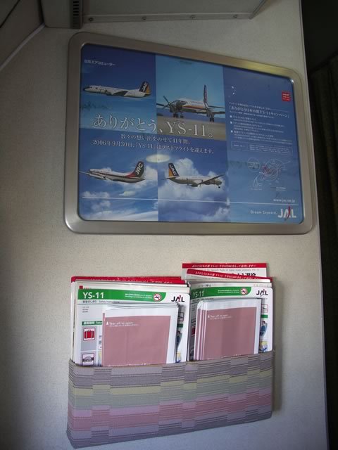 一番前の席なので,機内誌のポケットも壁に直づけ。例によって大量のエチケット袋が…。