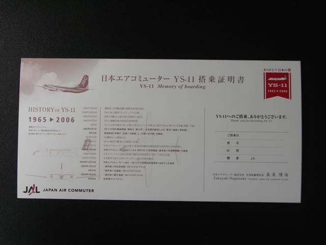 ちなみに,機内で配られた搭乗証明書はコレ。7月21日からデザインが変わったみたいだね。なお11日に乗れば,特別仕様の証明書がもらえます。