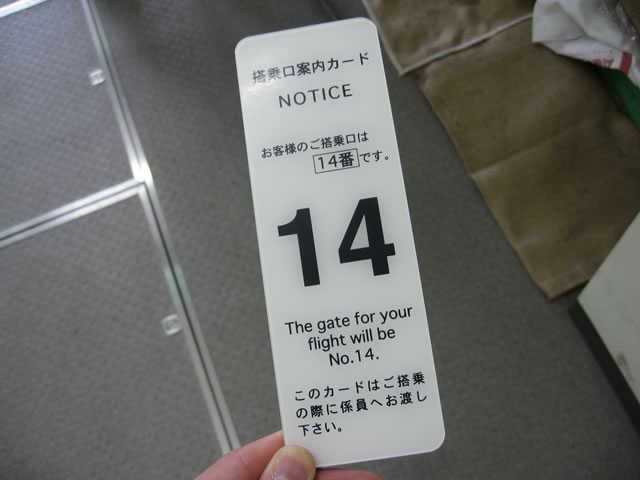 ボーディングブリッジからではなく,地上を歩くので“搭乗口案内カード”なるものを渡される(搭乗直前に回収)。以前は紙だったような気がするのだが…。