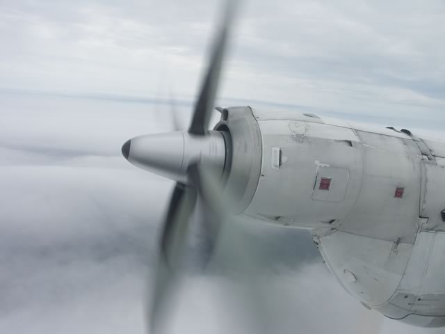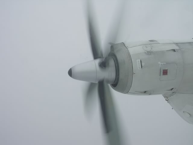 あいにくの雲模様。よく考えれば,僕の乗ったYS便の半分近くが雲上飛行だったなぁ。