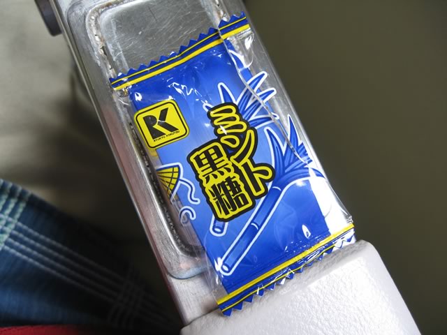 機内で配られるお菓子。ミント黒糖を見たのは初めてかも(いつもは定番の黄金糖なもので)。