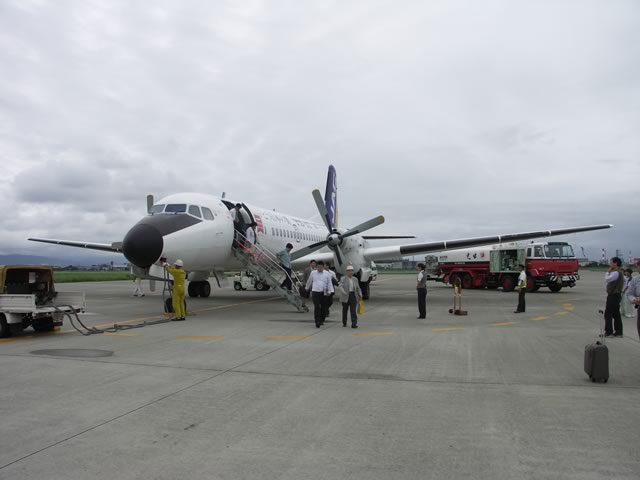 一昨日の鹿児島−福岡線に続いて,帰りはこれまで未乗だった福岡−松山線に乗ってみました。一応,最終日の30日にも鹿児島−福岡で予約は入れているものの,じっくりとは乗っていられないだろうから,“YS-11を堪能する”という意味においては,事実上これが僕にとってのラストフライトになるんだろうね。