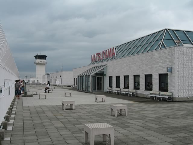 松山空港へ到着。空港ビルの外観と展望デッキはこんな感じ。