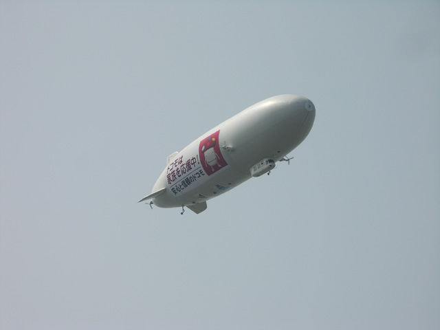 今日の昼過ぎ,ぼーっとメールチェックをしていたときのこと。ふと窓の外に目をやると,何やら巨大な飛行船がコッチへ向かってくるではないか〜。急いでカメラを取り出し,ベランダから何枚か撮ってみました。ドコモダケのイラストが張り付いているのをみると,どーもドコモ関西の宣伝フライトのようなのですねー。まさかこんな地方都市で,世界最大の飛行船ツェッペリンNT型を見る機会があるとは思いませんでした。日本にはコレ1隻しかないんだもんなぁ。ある意味宣伝効果絶大(笑)。