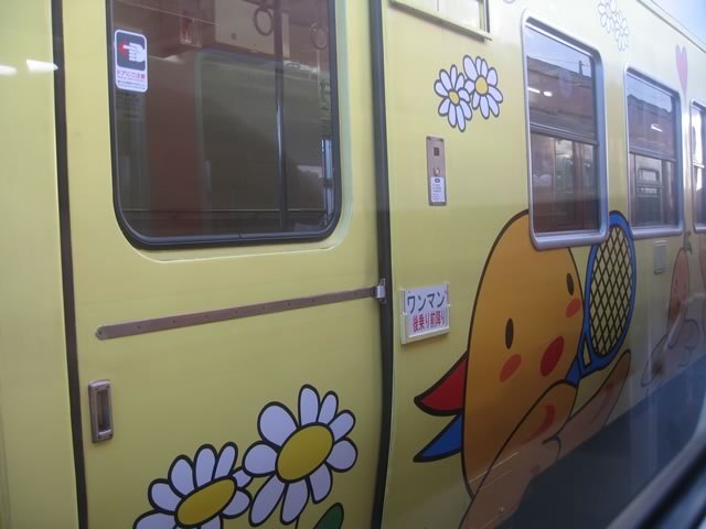 途中,兵庫国体のマスコットキャラクター“はばタン”列車と遭遇。