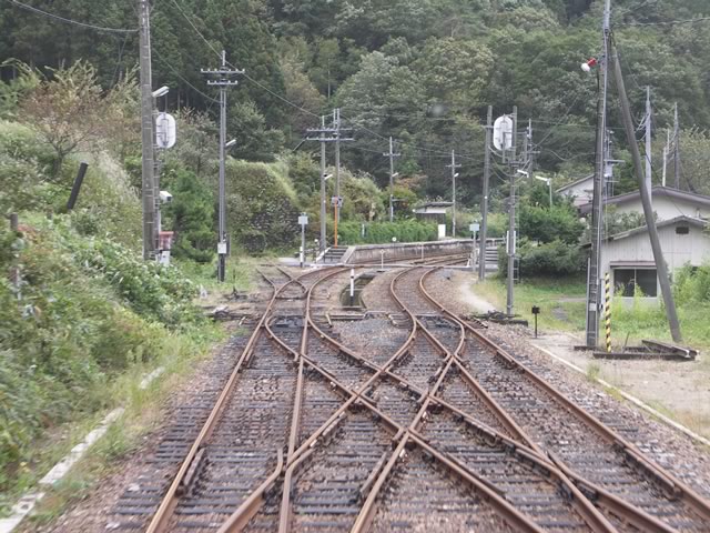 木次線名物三段スイッチバック。行って戻ってまた行ってと,進行方向がコロコロと変わります。