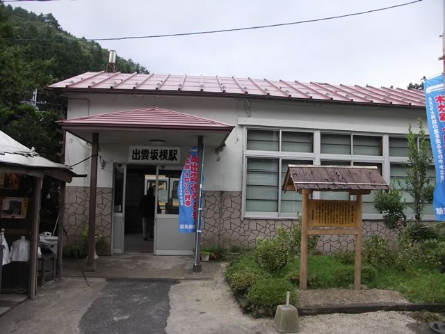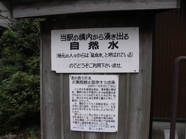 スイッチバックの端にある出雲坂根駅。ここは,延命水なる湧き水で有名な駅です。