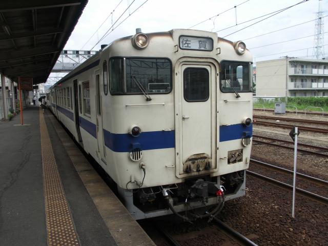 西唐津駅前の喫茶店で昼食をとり,1時間後の佐賀行きに乗車。キハ40シリーズは,エアコンがあまり効かないようで,いつ乗っても暑いなぁ。