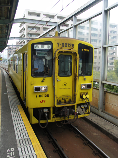 唐津−西唐津の1区間は,唐津線からやってきたキハ125に乗車。で,ようやく終点西唐津到着。