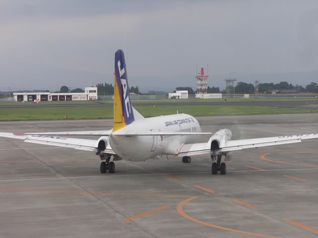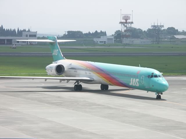 鹿児島空港にて,レインボーカラーの面影をみる。好きなエアラインだったのだけどなぁ>JAS。