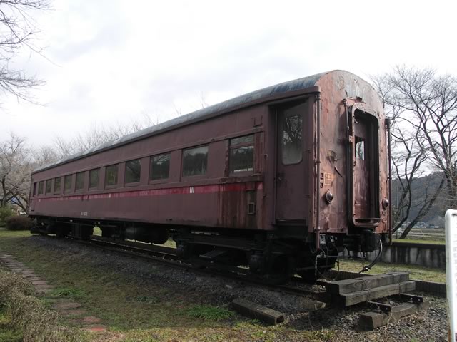 谷汲口駅に,昔使用していた客車が静態保存中。しかし,この荒れ具合といったら…。