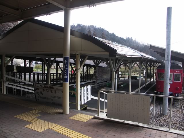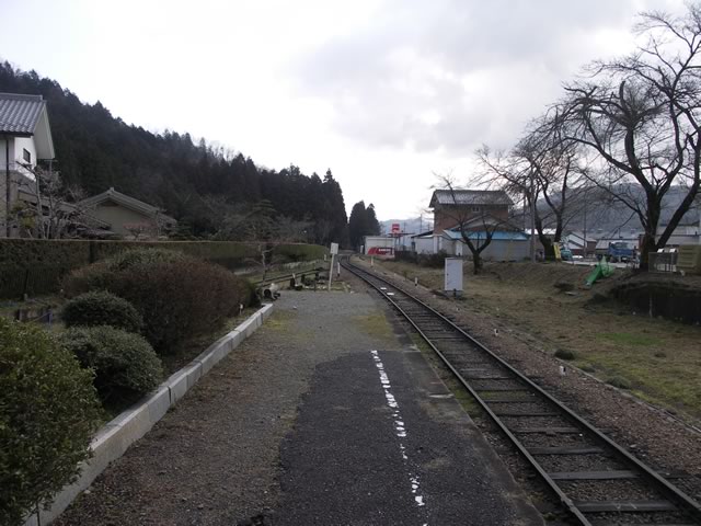 谷汲駅跡へ到着。当駅は,西国三十三所めぐりのラストを飾る華厳寺の最寄り駅で,毎月18日の谷汲山命日には臨時列車も設定されていたそうです。