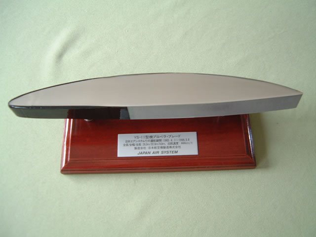 またマニアック道に走ってしまいますが,先日JAS【リンク】のWebサイトを見ていると,30周年だということで,いろいろなプレミアムグッズが売り出されているのに気付きました(現在はもう終わってます)。DC-10のビジネスシートがオークションに出されていたり,歴代フリートを象ったピンバッジセットが売られていたりと,ヒコーキマニアにはたまらないのでしょうが(←まだ,自分を旅客機マニアだと認めたくはない^ ^;;),その中でYS-11のプロペラブレードが“切り売り”されていたのですねー。かつてエアシステムで飛んでいたYSのプロペラを縦方向に切断して,まさに切り売り状態で出品されており,プロペラ機ファンの私としては買うか買うまいかそーとー迷ったあげく,思わず“Buy”を押してしまいました。で,それが,ついに今日届いたワケ。代引き弐萬は,ぼんびー学生にはキツかったですが,くじけずに箱を開封。“YS-11の大空を舞う姿が想い浮ぶ,貴重な一品です”の宣伝文句どーり(?),ブツが現れました。