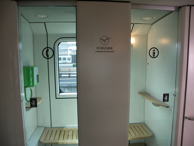 783系かもめの車内。白くない方のかもめ(笑)は,みどり/ハウステンボス号の特急3連結12編成で博多駅を出ます(Wikipediaによると3階建てと呼ぶらしい)。
