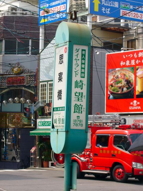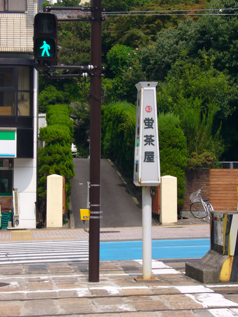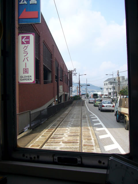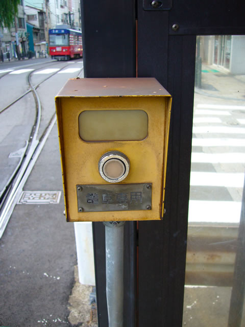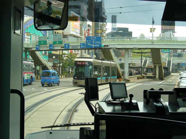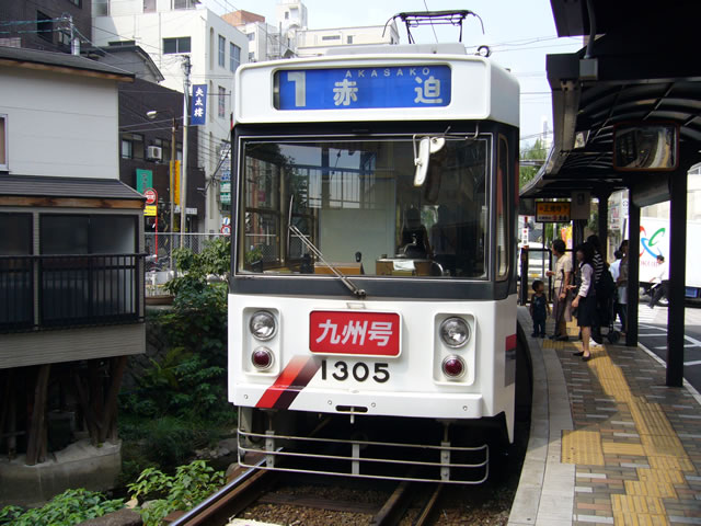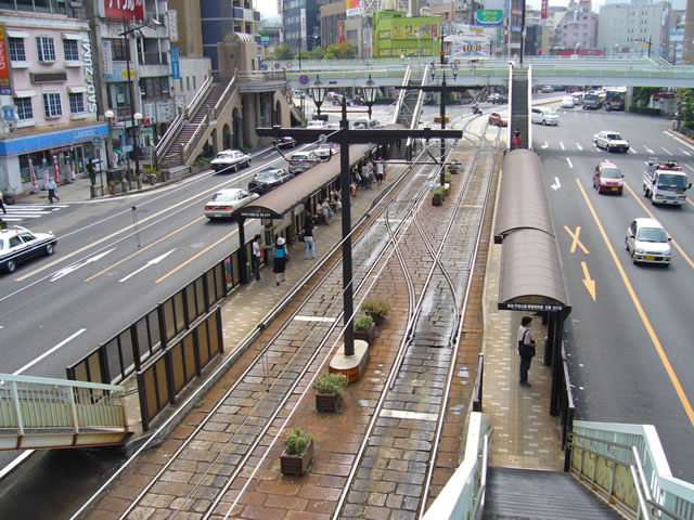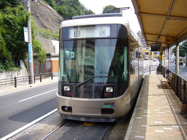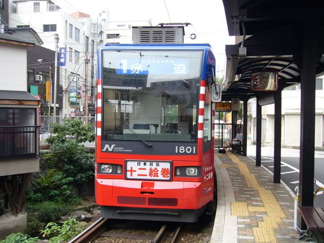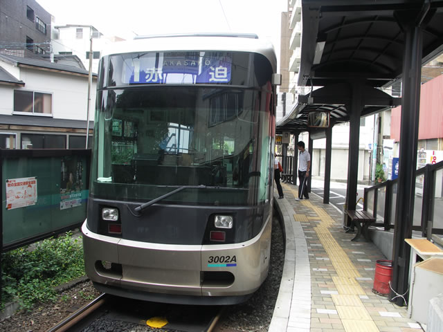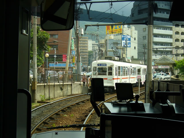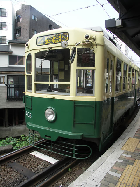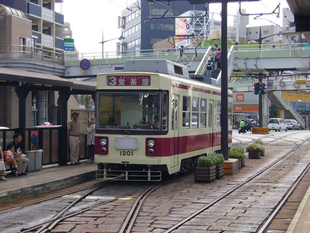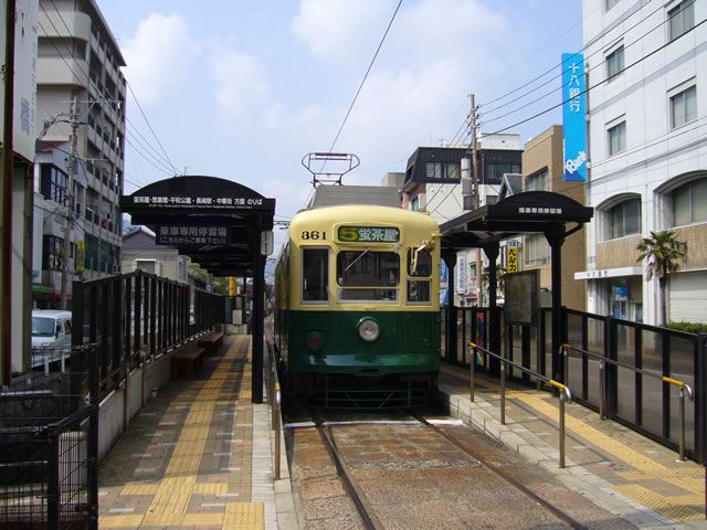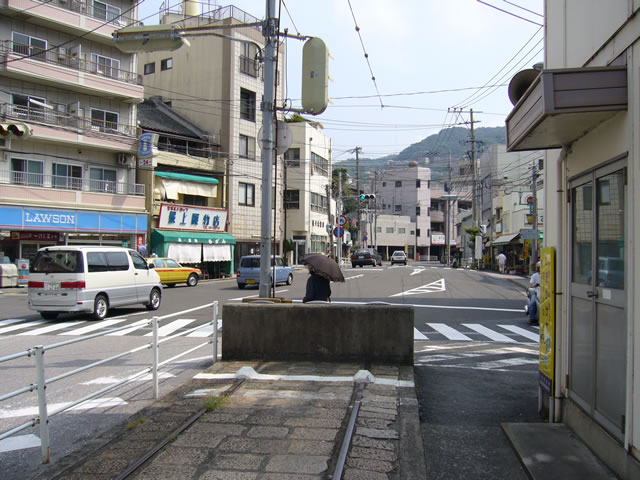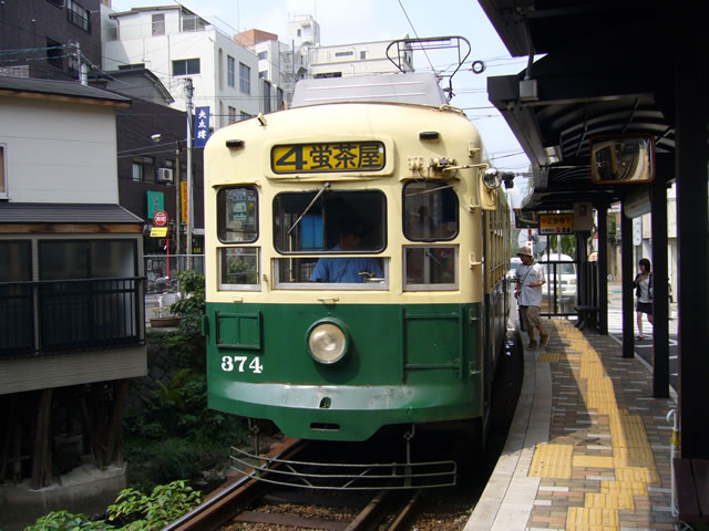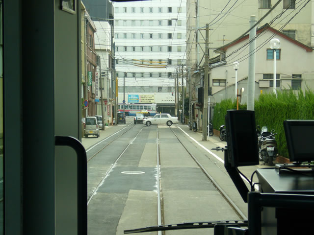 終点正覚寺下のひとつ手前,思案橋電停にて。