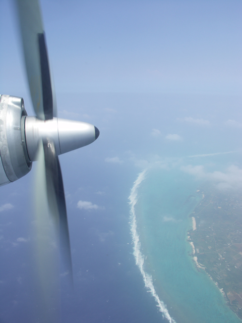 定刻より10分ほど遅れ,14時ちょい前に与論空港到着。あいにくの薄曇りだったものの,台風の影響はそれほどないようなので,まぁヨシとするかな。今回は,プロペラの真横の席(3A)に座ったものだから,降りてからもしばらく耳鳴りが(^ ^;)。8月から就航するDHC-8-Q400ではもうそんなことはないのだろうなぁ。