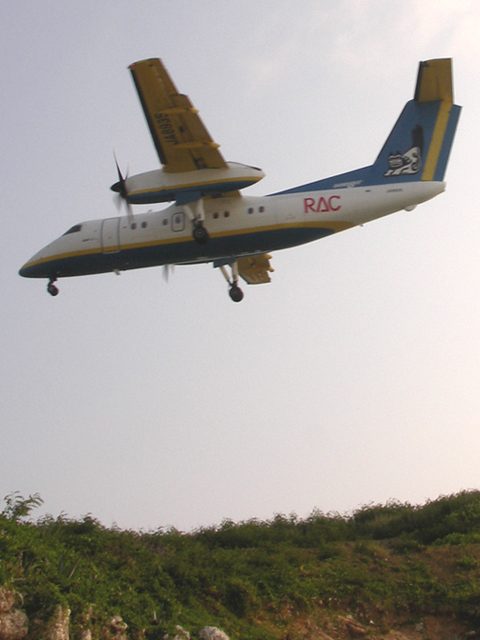 すかっと晴れた夕刻のビーチを撮りたかったのにな〜,とぼやいていると突然ブーーンとエンジン音が。ダッシュ8が頭上スレスレ(←ちとオーバー)を飛びながら,タッチダウン。実はこの海岸,滑走路先端の直近だったのですねー。音がしてから降りてくるまでほとんど余裕がなかったので,まともにフレーミングできなかったものの,とりあえず何枚かパシャっと。