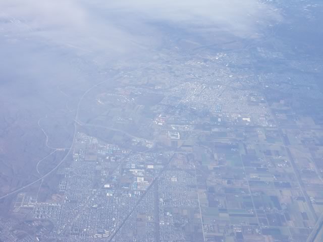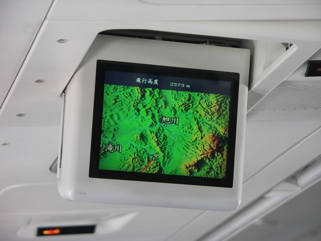 まもなく到着地,旭川。しかし,この手の航路案内のモニタって,どうして渋い明朝体なのだろ?!