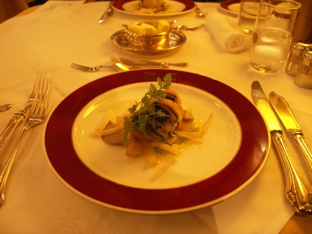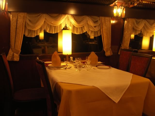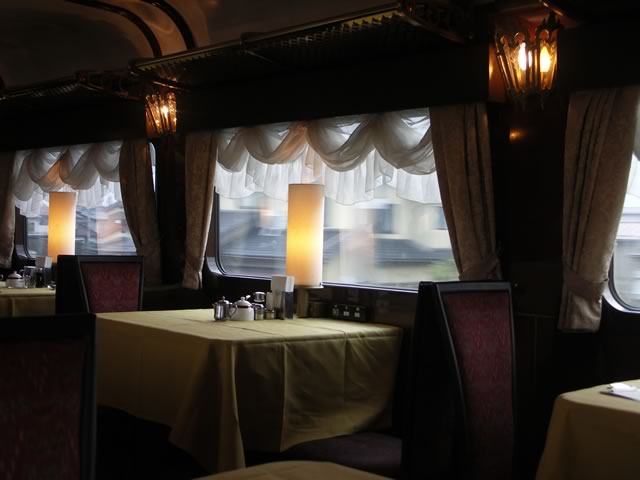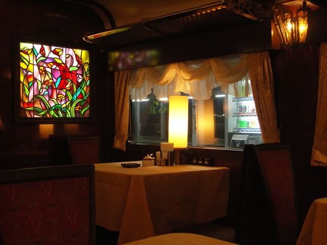 さて,いよいよディナーの時間です。舞台は,レストランカー“ダイナープレアデス”。