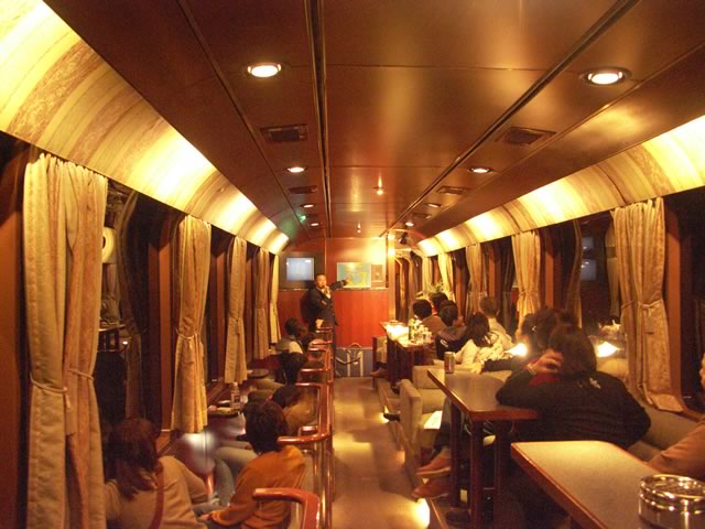 サロンカー“サロンデュノール”では,青函トンネル通過時に車掌さんによる説明会が開かれました。