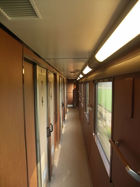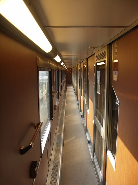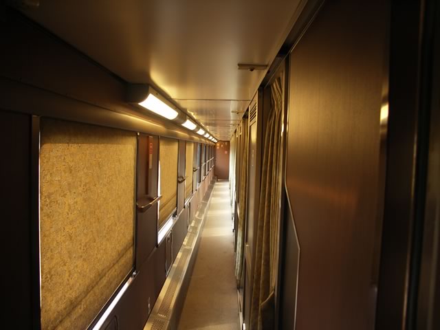客車内を歩き回ってみました。扉が多く,また通路が左・中央・右と車両ごとに異なるため,(Bコンパートメントから)食堂車に行くのも結構大変です。